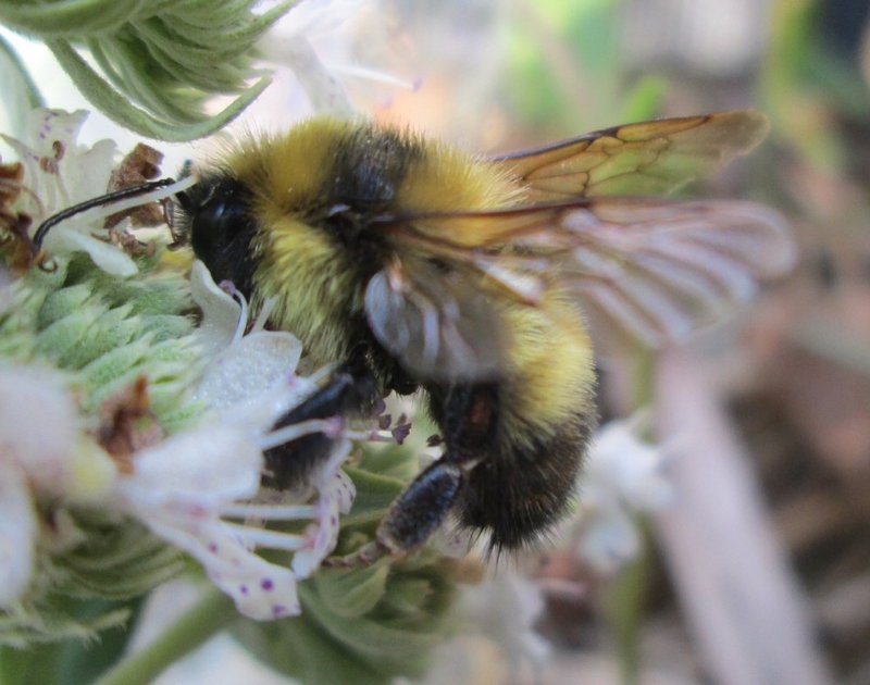 Photo: Red-belted bumble bee (Bombus rufocinctus) on hairy mountain mint (Pycnanthemum pilosum), Kitchener, ON.