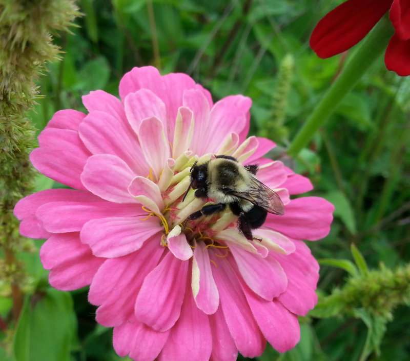 Sadly, the dead bumble bee my brother-in-law found was a new queen. Her wings and hair were intact; older queens will have bedraggled wing margins and sometimes look scruffy. That means one fewer bumble bee colony next year.