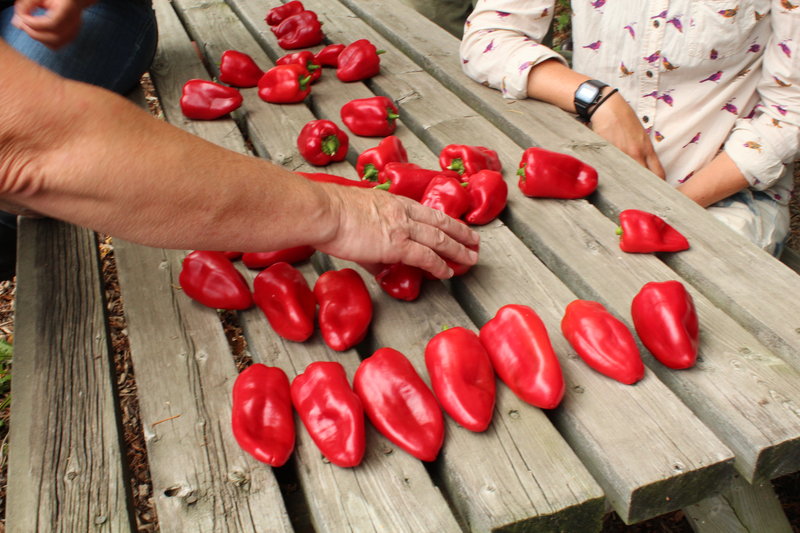 Another VSPN variety, the ‘Lipstick’ pepper, is an early producer, ready to harvest a full week ahead of other bell peppers at 70 days. The fruits should be selected for a pimiento-type, oblong shape at about 4-5 inches long. They should be medium to thick walled, crunchy, and juicy. Since these peppers should also produce well in cooler growing conditions, any plants that exhibit low vigour or are slow growers in cool weather should be rogued out of the seed harvest population.