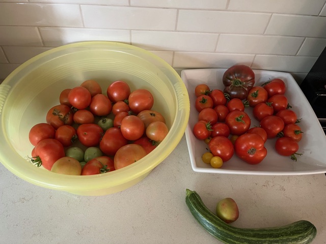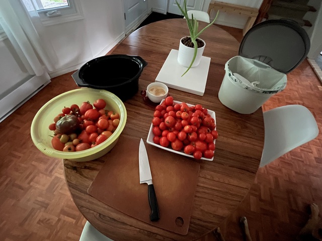 I would best describe the taste of the tomato as a "tomato tomato" - meaning there was nothing remarkable about the flavour .. just a good solid slicer tomato that works well in salads ;) The fruit being small, almost perfectly smooth and round, detaches easily from the plant when it's ripe. Generally I am in the habit of picking tomatoes at their breaker stage as this allows my family the option of seeing the tomatoes that are "almost ripe" on the counter, and plan meals accordingly.  As I type this on October 15th, I still have a few of the Petitbec plants that are giving me ripe fruit, which is crazy to me, because we're seeing cold temperatures dip to around 0, and have had a couple of nights of frost. I have fellow growers and family around the Maritimes, and throughout Ontario and Quebec, and have started to share the seeds that I have saved, as the little plants were very hardy for me, and big producers.