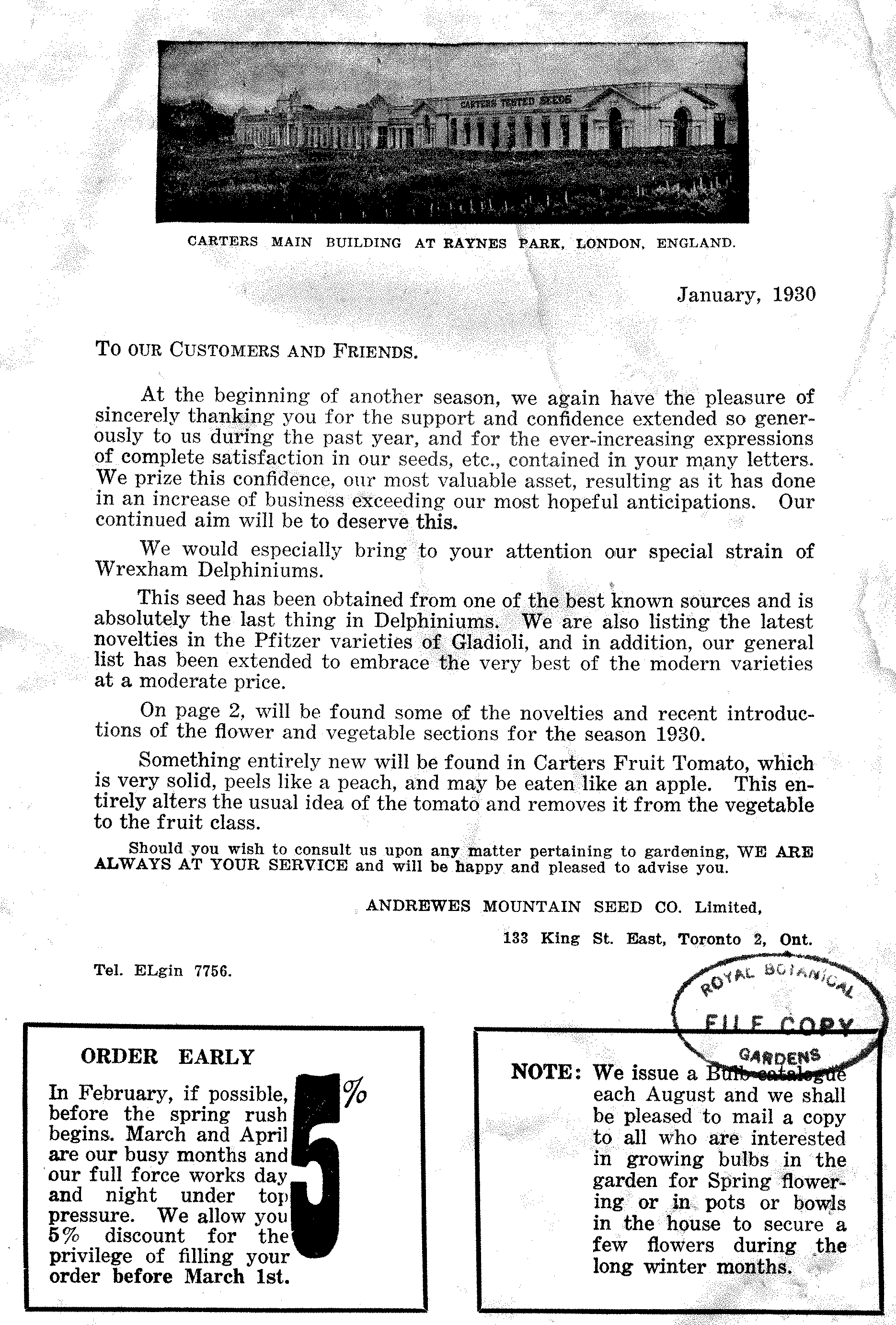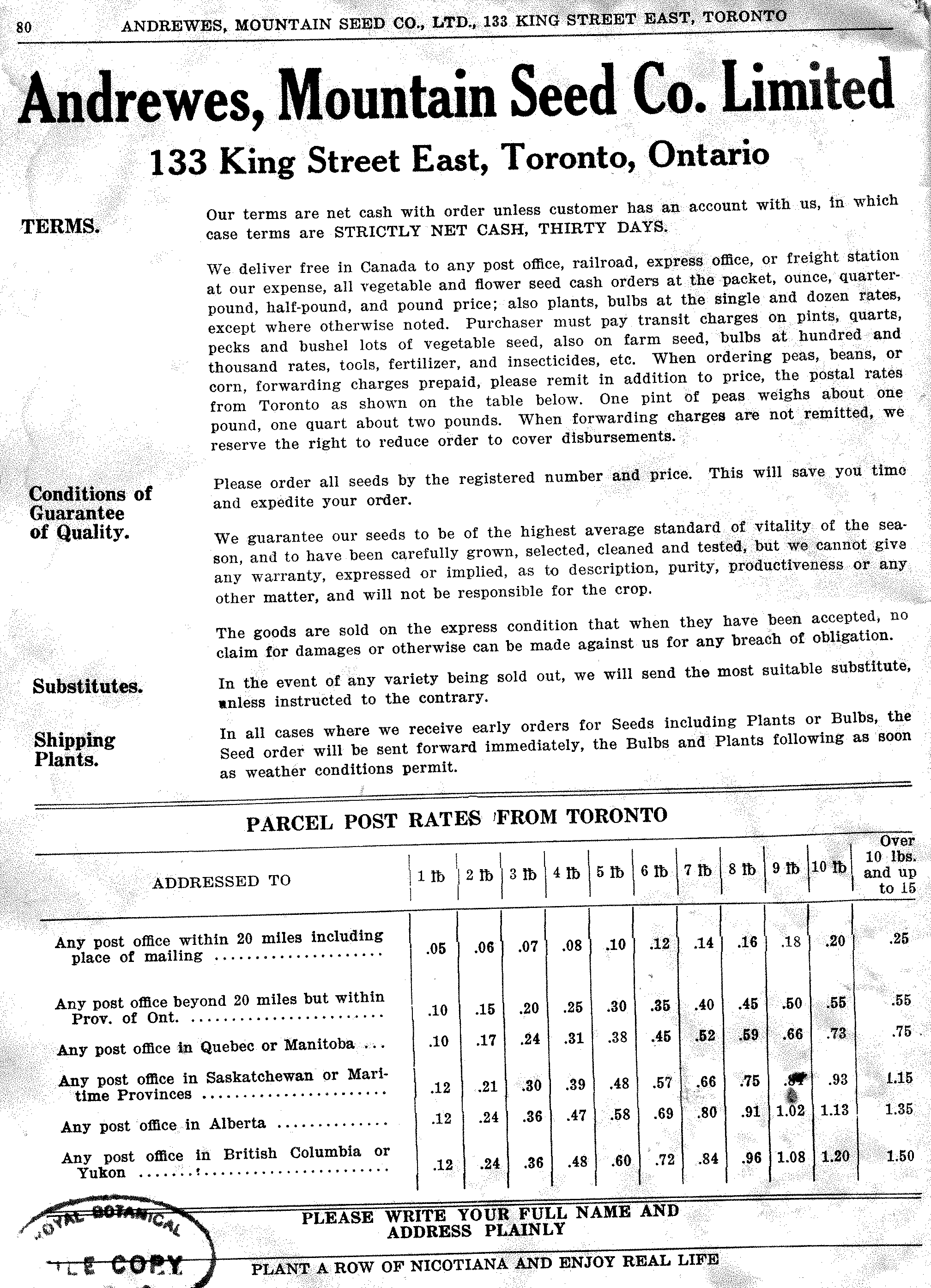 Thank you to Royal Botanical Gardens for allowing Seeds of Diversity to digitize these historic seed and nursery catalogues from the collection of the Centre for Canadian Historic Horticultural Studies.