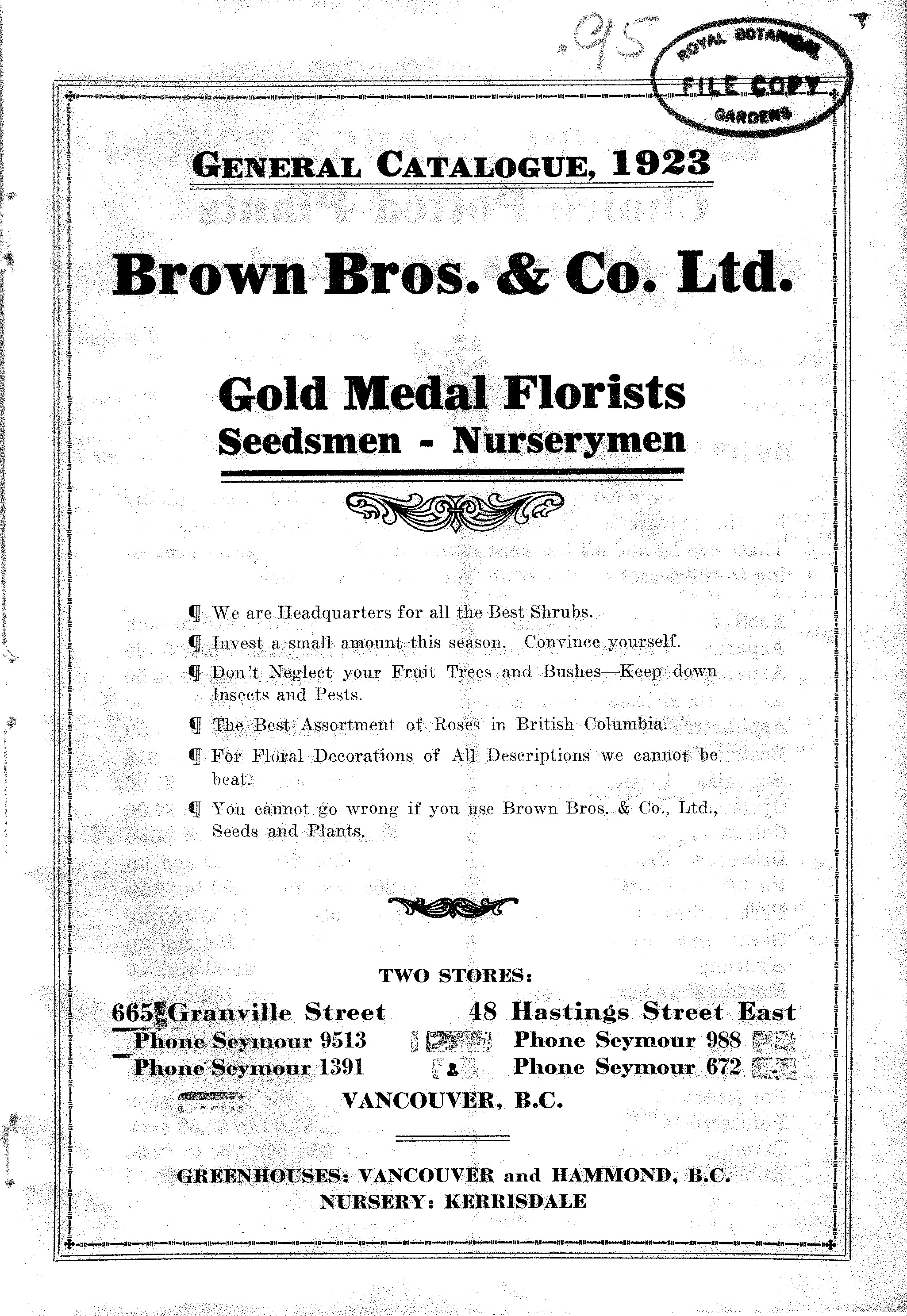 Thank you to Royal Botanical Gardens for allowing Seeds of Diversity to digitize these historic seed and nursery catalogues from the collection of the Centre for Canadian Historic Horticultural Studies.