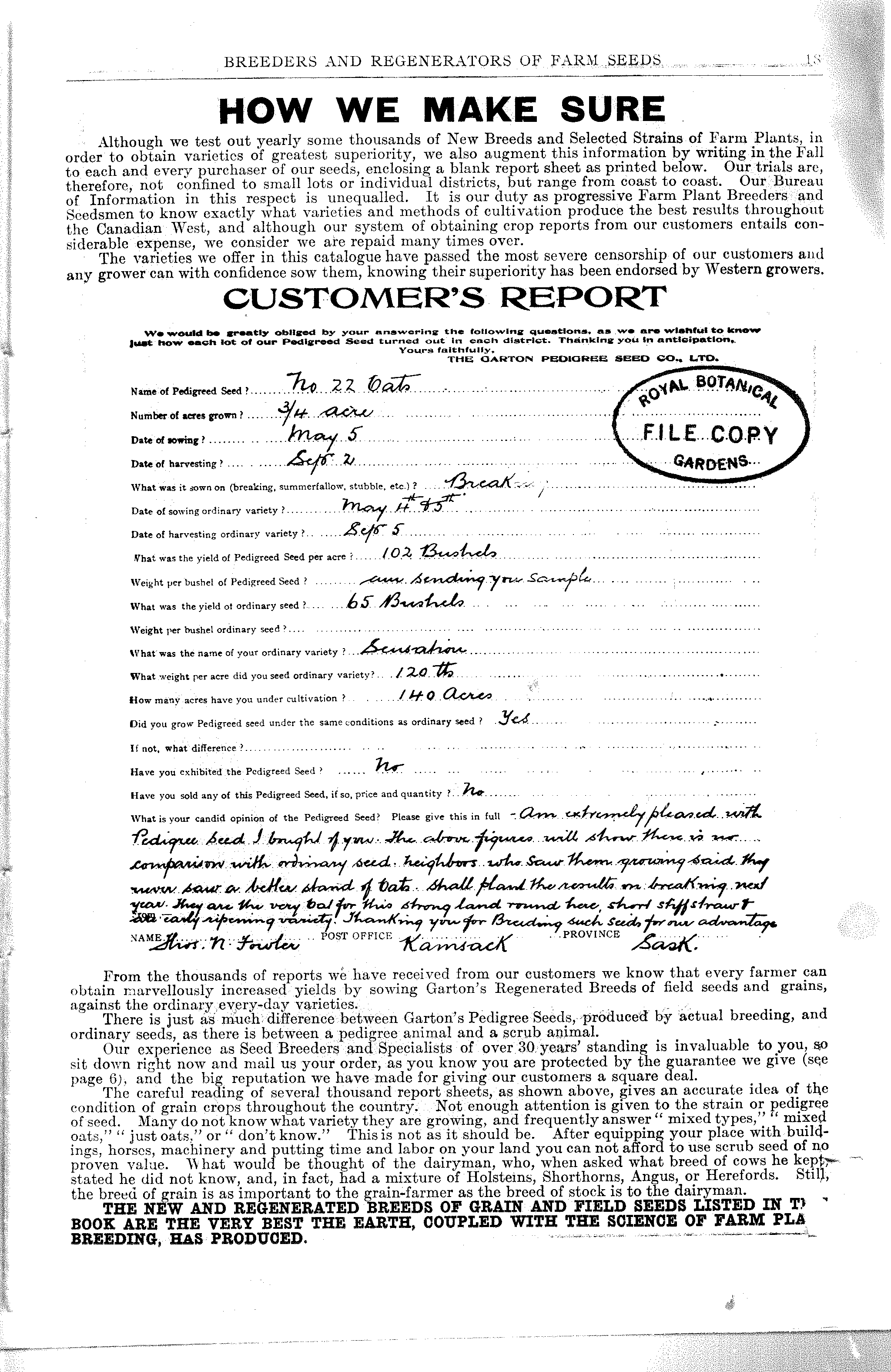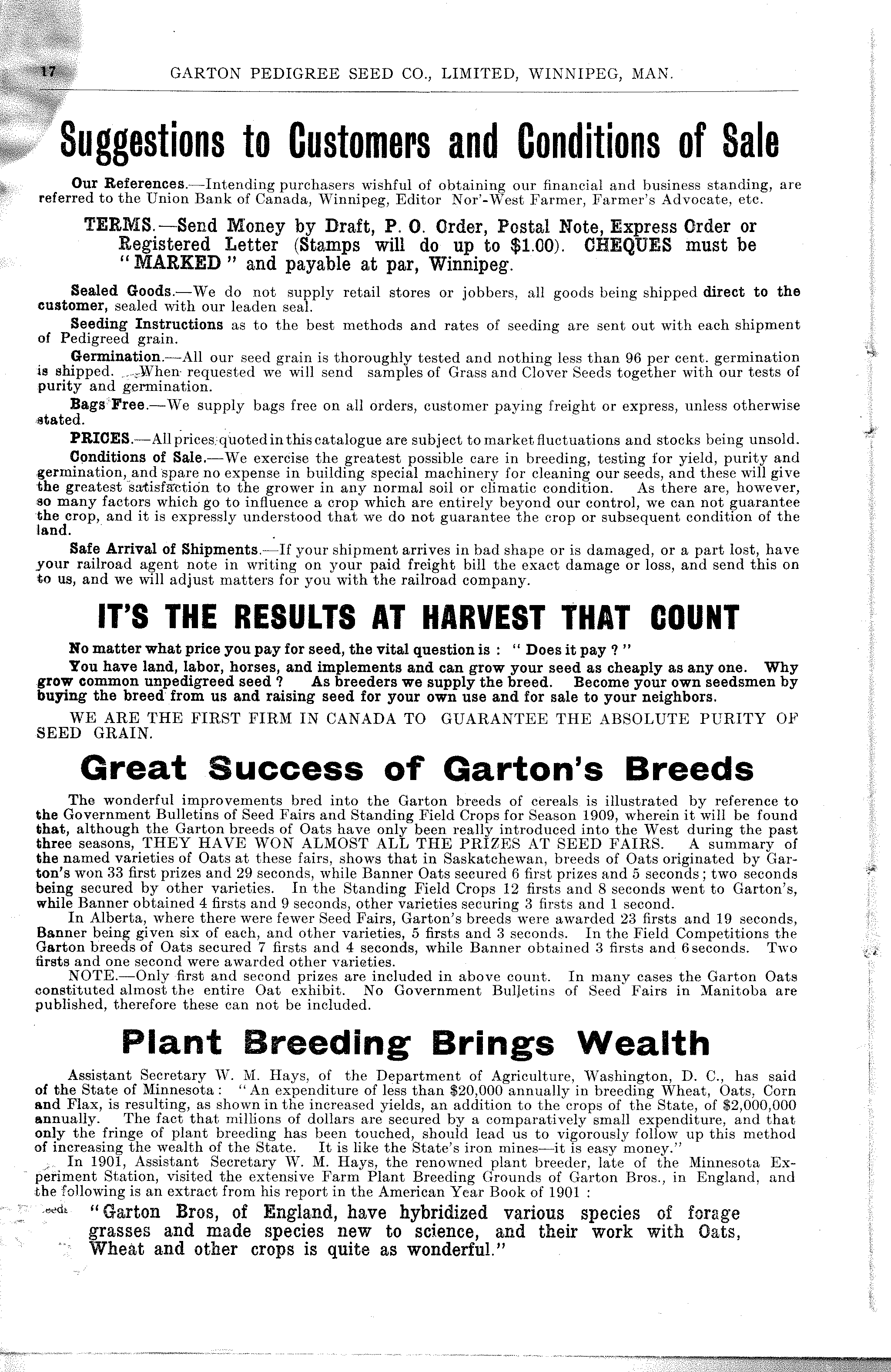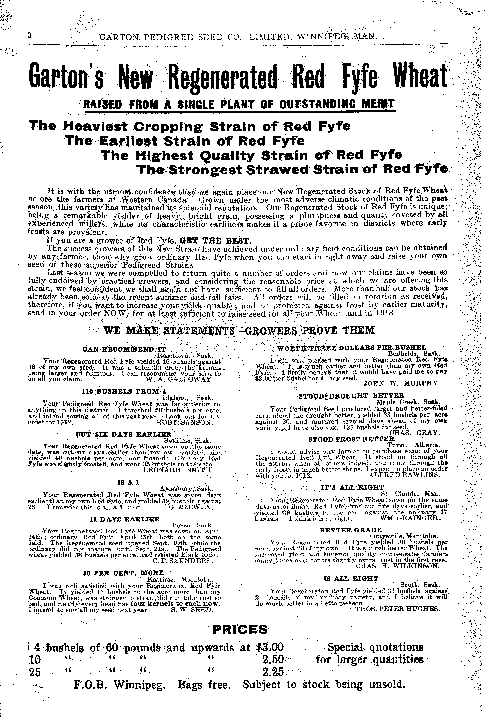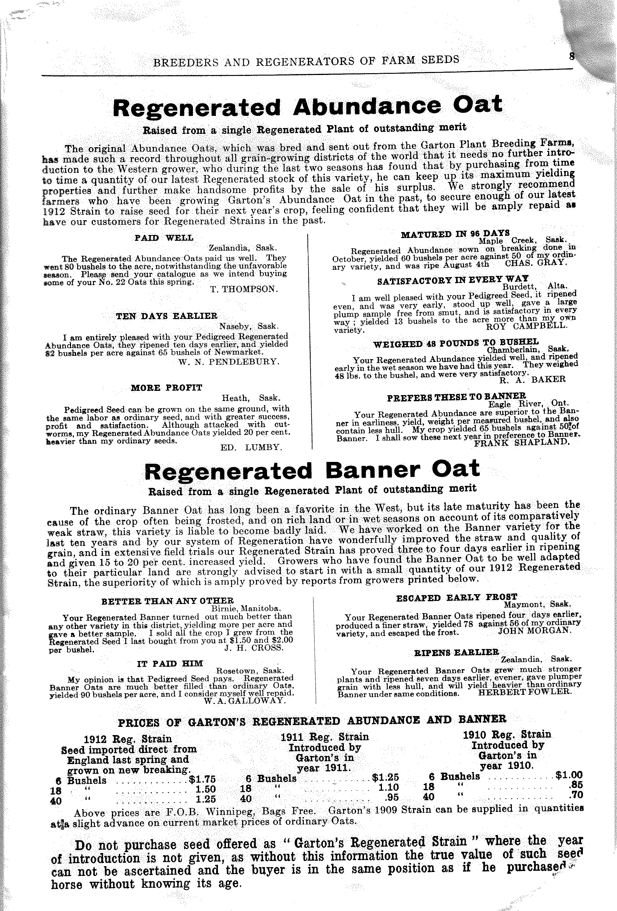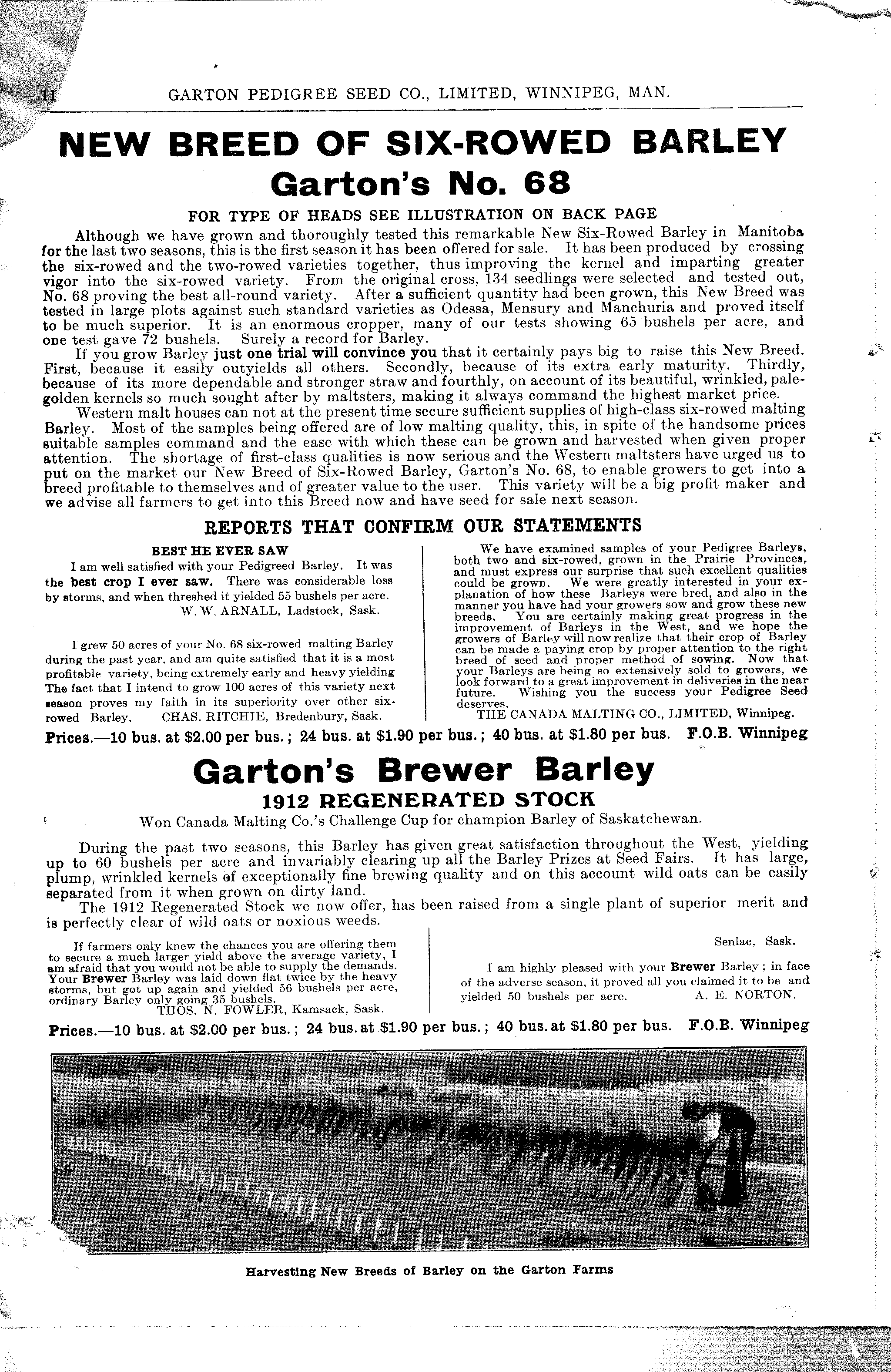 Garton Pedigree Seed Co. 1912 |